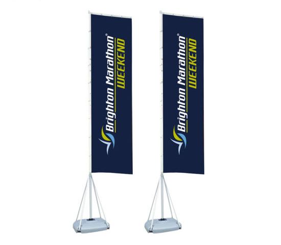 This 17ft Giant Flag for the double-sided Giant Flag, we print two (2) separate flags, and we place a silver-gray blocker material in the middle. All 2 pieces of fabric are sewn together to create a non-see-through double-sided banner flag.